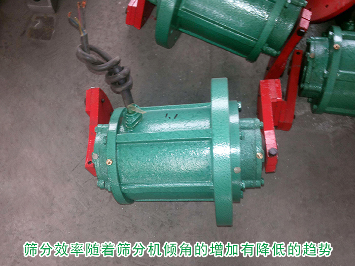 當(dāng)振動電機的工作轉(zhuǎn)速固定在500r/min時,在相對增高線速度的錘頭撞擊下,使得破碎并使之均勻化,排料粒度相對小一些,較有利于下道篩分工序。篩分機在傾角較小的工況下,篩分效率都較高。但隨著篩機轉(zhuǎn)速的增高,傾角的增大,部分物料在篩機體內(nèi)開始做離心運動,反而不利于篩分作業(yè),篩分效率迅速降低。