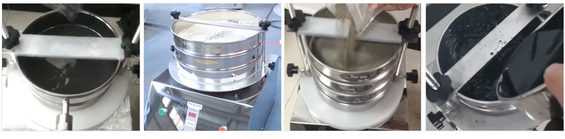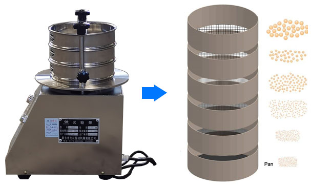 電磁試驗采用電磁振動器作為振動源,電磁振動器的振動帶動篩機低位振動,再通過底座傳遞到底座上由粗到細(xì)排列的一組標(biāo)準(zhǔn)試驗篩,同時安裝在下部的振動電機(或往復(fù)機構(gòu))將物料精選篩分,物料在標(biāo)準(zhǔn)檢驗篩的篩面上振動,使小于篩網(wǎng)孔徑的物料顆粒篩入下層檢驗篩,層層篩分,只有試驗篩的每一層都留有相同的粒徑,以達(dá)到不同的粒徑分離。