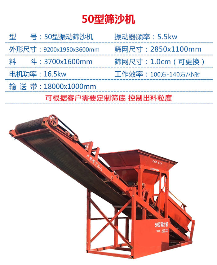 操作簡單,工作效率高,應(yīng)用在建筑行業(yè)與大小型沙廠的,結(jié)束了多年來用人工篩沙的歷史。依據(jù)自己的需要,可更換所需的篩網(wǎng),簡單易換、重量輕、便于,該機出沙率100%,不論干沙子還是濕沙,本機均能穩(wěn)定篩分,克服了由于沙子含水率高,人工難以篩分的時代。
