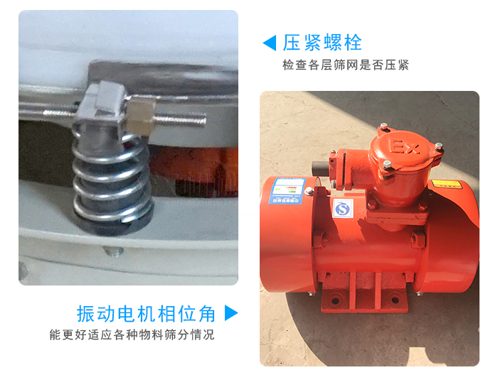 ⑶開機(jī)前,應(yīng)先檢查各壓緊螺栓的緊固程度,及各料口的位置是否與接料器對正,并觀察振動(dòng)電機(jī)是否能正常轉(zhuǎn)動(dòng)及彈簧受力有無阻礙,檢查各層篩網(wǎng)是否壓緊。